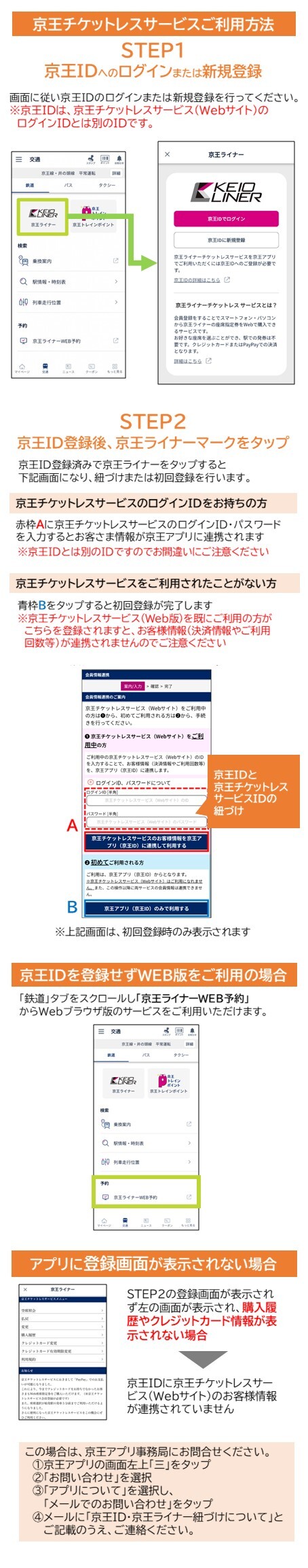 京王アプリバージョン2.2.0以降では京王アプリから京王チケットレスサービスをご利用の際、京王IDへのログインが必要になります。