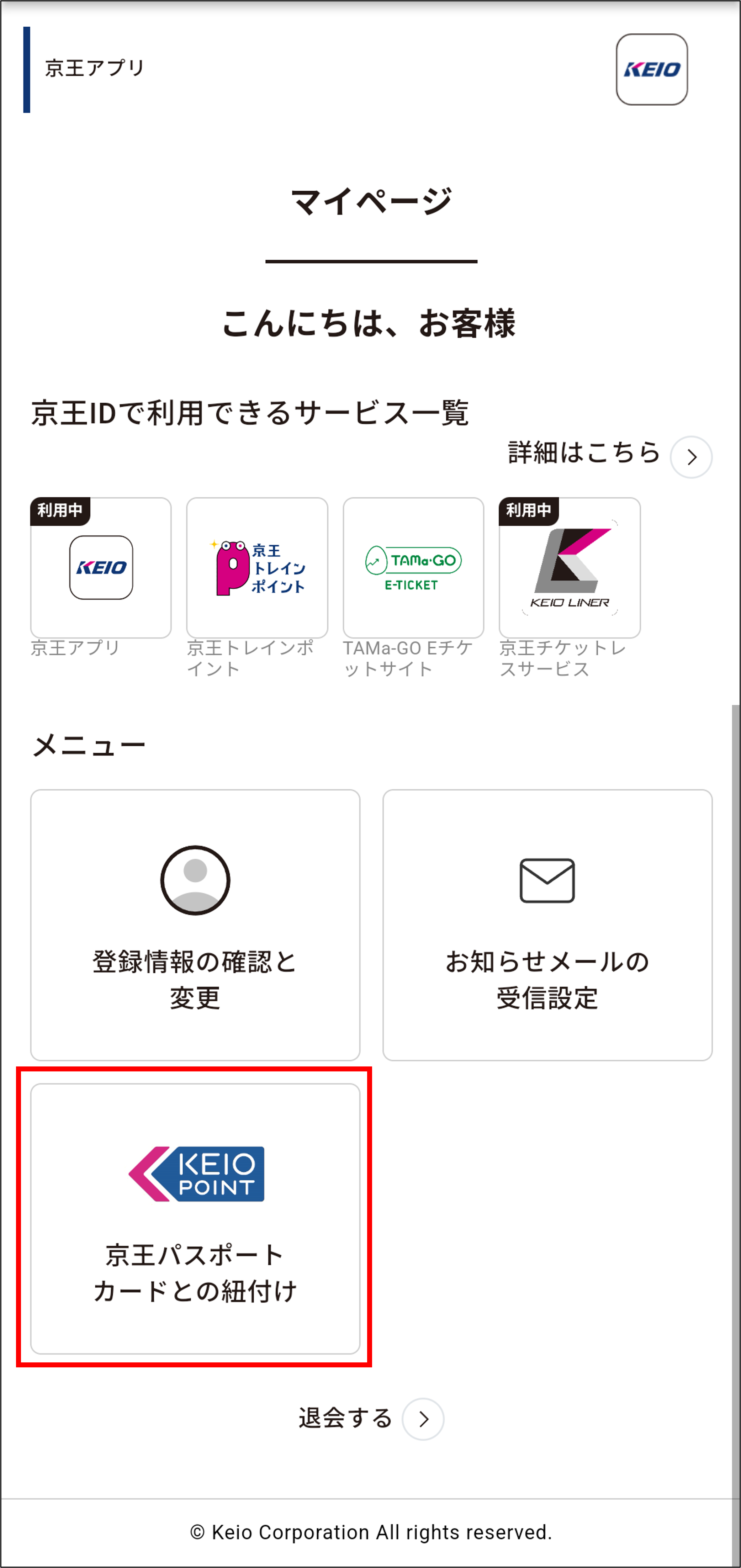 以下の手順により京王ポイント画面で表示されるカードを変更できます。